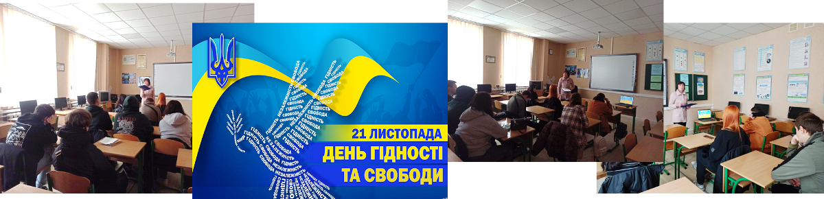 21 листопада в ліцеї відбувся патріотичний екскурс «Події, що змінили історію», присвячений Дню Гідності та Свободи. Під час заходу учні обговорили зміст понять «гідність» і «свобода», переглянули тематичну презентацію з коментарями ведучої та відеофрагменти подій Євромайдану.