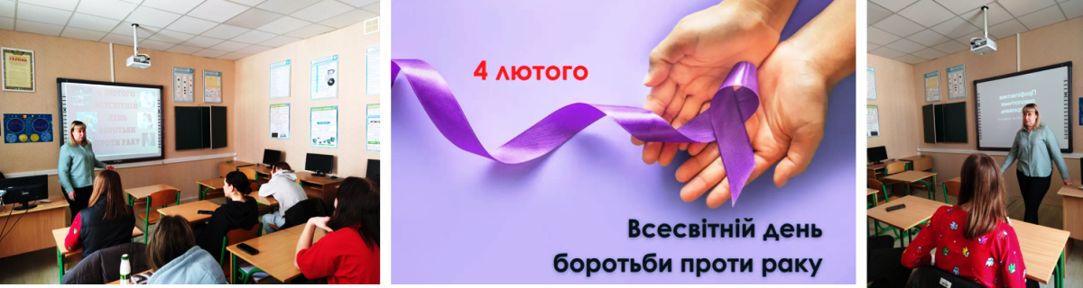 До Всесвітнього дня боротьби проти раку, у ліцеї №47 «Альтернатива» відбулась година спілкування «Ми разом проти раку», під час якої здобувачі освіти разом з вчителем обговорили важливі питання стосовно симптомів та профілактики онко захворювання. Пам’ятаємо! рак у більшості випадків це не вирок! Головне вчасно звернутись до лікаря.
